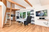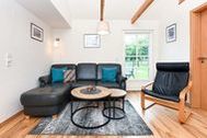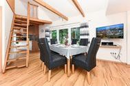 Größe ca. 75 Quadratmeter, Wohnraum mit integrierter Küche, Schlafzimmer, zweites separates Schlafzimmer/Kinderzimmer, Badezimmer mit Dusche, Waschtisch und WC, Erdgeschoss, Obergeschoss, Terrasse (Sitzgruppe im Garten), Koffer-/Abstellraum, optimal für 2 bis 6 Personen.