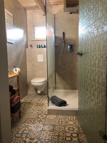 Dusche/WC, Bettwäsche, Handtücher, Musikanlage, Terrasse, Tiere willkommen, Nichtraucher, Spülmaschine, Haartrockner, Kühlschrank, Backofen, Heizung, WLAN, Gefriermöglichkeit, TV - Flachbild, Küche (offen), Doppelbett, Schlafsofa, Kaffeemaschine, Rauchmelder, Seife, Toilettenpapier, Kissen, Toaster, Wasserkocher, Pad-/Kapsel-Kaffeemaschine, Grill (Kat.), Holz- oder Parkettböden, Sonnenschutz, Verdunkelungsmöglichkeit, Feuerlöscher, Fliesen-/Marmorboden