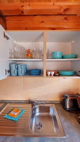 Die Ferienwohnung besteht aus einem Wohnzimmer mit integrierter Küchenzeile (inkl. Geschirrspüler, 2 Kochfeldern, Kühlschrank mit Tiefkühlfach), einem Schlafzimmer (Doppelbett 1,60 x 2,00 m) sowie Du/WC.