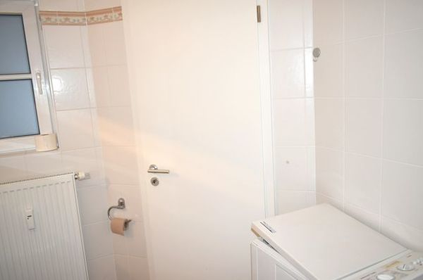 Bad : Badewanne, Duschwand, Kosmetikspiegel, Spiegel, Waschbecken, WC, Fön, Waschtrockner