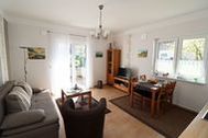 Schlafzimmer mit Doppelbett, weiteres Schlafzimmer mit Einzelbett incl. Ausziehbett (0,80 x 1,70 m), Wohn- und Esszimmer mit Ausgang zur Terrasse, Bad mit Dusche, Fenster und Waschmaschine, behinderten-/rollstuhlfreundliche Bauweise durch breite Türen und Haltegriffe an Waschbecken und WC, Duschsitz auf Anfrage