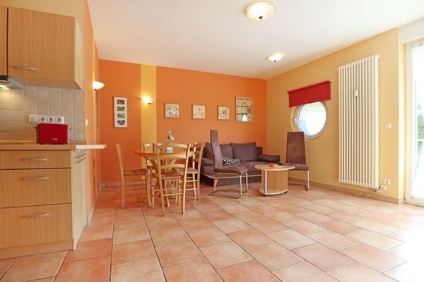 Die behagliche 2-Zimmer-Erdgeschosswohnung bietet auf 51qm Platz für einen erholsamen Urlaub mit zwei Personen. Auf der saisonal möblierten Süd-Ost Terrasse mit Gartennutzung genießen Sie entspannte Stunden an der frischen Luft. Der offene Wohn- und Essbereich heißt Sie mit einer freundlichen Atmosphäre willkommen. Hier stehen Ihnen ein Sofa, zwei Sessel sowie ein Esstisch zur Verfügung. Die integrierte Küchenzeile ist ideal für Selbstversorger ausgestattet und verfügt über Cerankochfeld, Mini-Backofen, Mikrowelle, Kühlschrank mit integriertem Gefrierfach, Wasserkocher, Kaffeemaschine, Toaster und weitere Küchenutensilien. Im separaten Schlafzimmer mit Doppelbett, Kleiderschrank und einem zusätzlichen kleinen Fernseher finden Sie Ruhe und Erholung. Das innenliegende Duschbad ist mit Waschtisch, Fön und WC ausgestattet. Für Ihren Pkw ist ein Stellplatz in der hauseigenen Tiefgarage reserviert. Fahrräder können je nach Verfügbarkeit in einem abschließbaren Fahrradraum innerhalb der Tiefgarage untergestellt werden. Hunde sind gegen Gebühr herzlich willkommen. Die Wohnung ist eine Nichtraucherunterkunft. Bitte beachten Sie, dass kein WLAN vorhanden ist. Die Ferienwohnung befindet sich in einem ruhigen Appartementhaus, nur etwa 250 Meter vom naturbelassenen Strand entfernt und in unmittelbarer Nähe zu schönen Wanderwegen ? ideal für alle, die Erholung in naturnaher Umgebung suchen.
