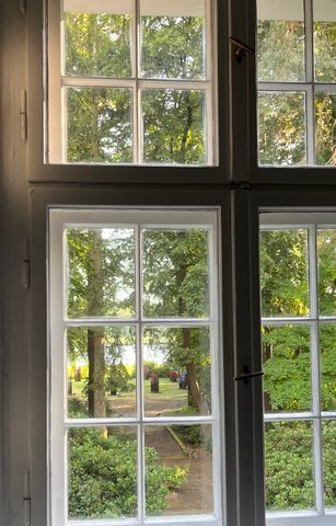 Eingangsbereich, 1. Etage, Himmelbett, TV-Bereich, Ankleidebereich, Badezimmer, Fön, Handtücher, Duschgel / Shampoo, Seife, Holzdielen geölt, gemeinschaftlich genutzt werden: die Küche, das Esszimmer, die Diele mit Kamin, und CD-Player, die Gästetoilette, der Grill, die Terrasse, die Badestelle und der Park