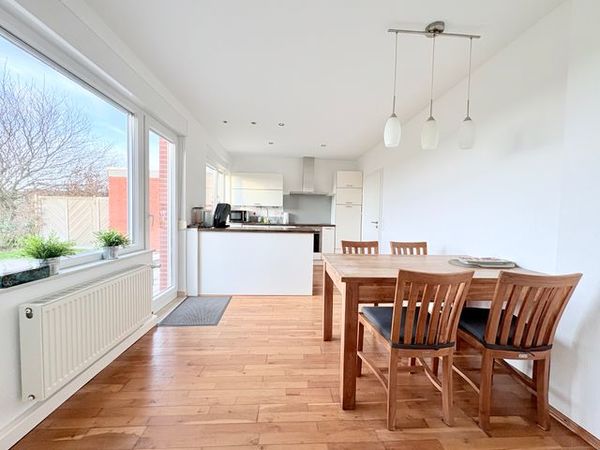 Die große möblierte Terrasse mit Garten lädt zu langen Sommerabenden ein. In der voll eingerichteten Küche fehlt es an nichts: Kaffeemaschine, Spülmaschine, Backofen, sogar eine Waschmaschine steht zur Verfügung. Nach einem langen Strandtag kannst du einfach ankommen, aufatmen und loslassen.