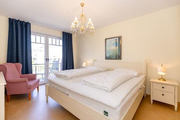 - in der 1. Etage/Aufzug - möblierter Balkon mit Meerblick (Westlage) - Autostellplatz Nr. 1.12 - Tiefgarage (Einfahrtshöhe 2,00 m) - Fahrradkeller - Sauna inkl., Waschmaschine u. Trockner gegen Gebühr - Nichtraucherappartement! Keine Haustiere! - WLAN-Bereitstellung kostenfrei (ohne Gewähr) - Wohnbereich mit integrierter Küche und Essplatz - Küchenzeile - Herd mit Backröhre, Mikrowelle, Kühlschrank mit Gefriermöglichkeit und Tischgeschirrspüler - 1. Schlafzimmer mit Doppelbett (Boxspringbett mit Topper) und Kleiderschrank - 2. Schlafzimmer mit Einzelbett und Kommode - Badewanne/WC
