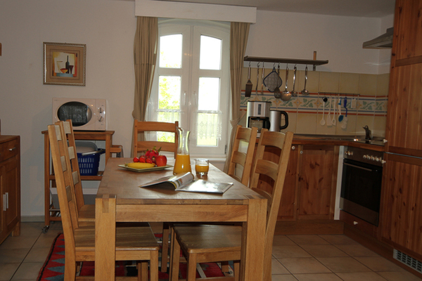 Die komfortable Nichtraucher-Fewo befindet sich im Hauptkomplex der Feriewohnanlage. Durch einen separaten Eingang gelangen Sie in den Gemeinschaftsflur der zu vier Wohnungen führt. Die Fewo liegt im DG und hat einen gemütlichen Wohnbereich mit Couchgarnitur, Stereoanlage, DVD-Player und SAT-TV, sowie einen vollständigen Küchenbereich mit Ceranfeld, Backofen, Geschirrspüler, Kühl-/Gefrierkombination, Mikrowelle, Kaffeemaschine, Toaster, Wasserkocher und Geschirr. Das Bad ist ausgestattet mit einer Dusche, Badewanne, WC, und Haarfön. Das Schlafzimmer ist mit Ehebetten und das Kinderzimmer mit einem Tandembetten ausgestattet. In der Fewo sind Dachschrägen vorhanden, die aber die Bewegungsfreiheit nicht einschränken. Genießen Sie in unseren 2500 qm großen Garten z.B. Ihr Frühstück. Grillmöglichkeit im Garten nach Absprache möglich.
