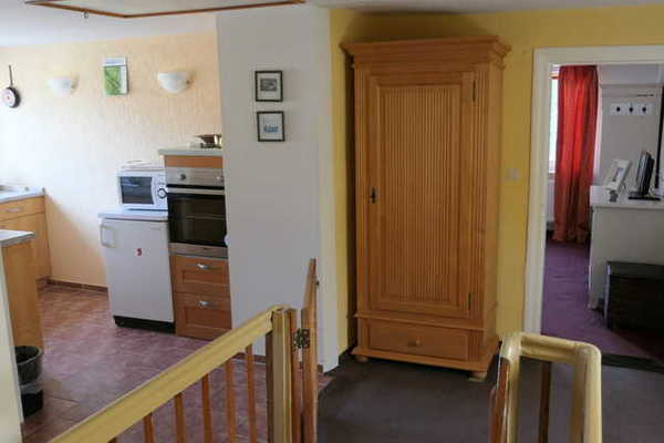 Die Ferienwohnung ist wegen der relativ steilen Treppe erst für Kinder ab 5-6 Jahren geeignet. Sitz- und Kochecke, sowie der Treppenaufgang sind offen gestaltet.