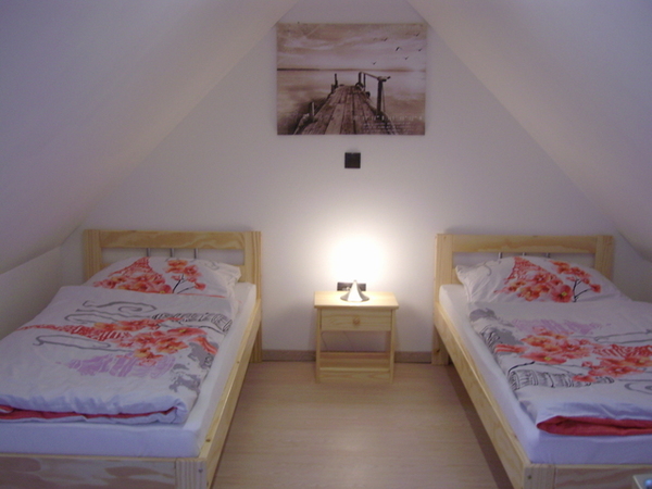 3 - Raum-Ferienwohnung im Obergeschoß (teils kleine Dachschrägen) mit weitem Blick ins Grüne. Die Wohnung ist ausgestattet mit einem Wohnraum mit Couch, 2 Sesseln, Couchtisch, Flachbildschirm, Essgruppe sowie einer Küchenzeile mit 4 Kochfeldern, Backofen, Mikrowelle, Spüle, Kühlschrank mit Gefrierfach, Geschirrspüler, Kaffeemaschine, Wasserkocher etc.). Der erste Schlafraum verfügt über ein Doppelbett und Kleiderschrank. Das zweite Schlafzimmer befindet sich im Dachgeschoß mit zwei Enzelbetten und Kommode.Die Wohnung hat, bis auf die Schlafzimmer, zusätzlich überall Fußbodenheizung. Eine Terrasse mit Kamingrill ist am Haus vorhanden. Bad mit DU/WC, Fenster, Handtuchtrockner und Fön. Handtücher und Bettwäsche sind bitte mitzubringen. WLAN kostenfrei! Der Parkplatz befindet sich auf dem Grundstück und kostet die Nacht 1,00 . Gesetz seit 2017.