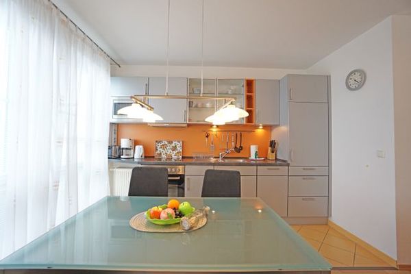 Die modern eingerichtete 2-Zimmerwohnung im Erdgeschoss der Dünenresidenz, lädt mit ihrer großzügigen Terrasse und direktem Meerblick zum Verweilen ein. Ihnen steht ein großes Wohnzimmer mit Schlafcouch für 2 Personen, einem komfortablen Schrankbett zur Verfügung. Im Wohnzimmer befindet sich die offene Küchezeile mit Esstisch. Das Schlafzimmer ist mit einem Doppelbett und einem 2. Fernseher ausgestattet. Außerdem steht Ihnen ein modernes Duschbad zur Verfügung. Zur Wohnung gehört ein kostenfreier Tiefgaragenplatz (Nummer 53).