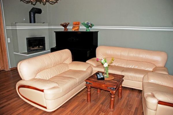 Im großen Wohnzimmer befinden sich eine Sitzcouch (für zwei Gäste aufbettbar) mit Tisch, ein Ledersofa, ein Schrank und ein TV-Gerät sowie ein Klavier. Ein besonderes Flair erhält diese Wohnung durch den vorhandenen Kamin, der besonders im Winter Behaglichkeit bietet. In der großen Küche finden Sie neben einem Esstisch mit Stühlen, einen Herd mit Backofen, Mikrowelle, Kaffeemaschine, Wasserkocher, Toaster und Kühlschrank.