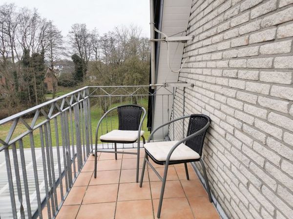Die geräumige Ferienwohnung bietet ausreichen Platz und ist ansprechend ausgestattet: Das große Wohnzimmer hat eine gemütliche Sofaecke und einen bequemen Ledersessel sowie einen Esstisch und ein weiteres Sofa. Vom Wohnzimmer aus ist der kleine Balkon mit Sitzgelegenheit und Blick in den schönen Garten begehbar.