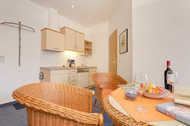 Eine gemütliche Sitzecke mit Kabel-TV und Radio läd zum Ausruhen und Entspannen ein. Die komplett ausgestatteten Küchen, - natürlich mit Geschirrspülmaschine - ergänzen die komfortable Ausstattung.