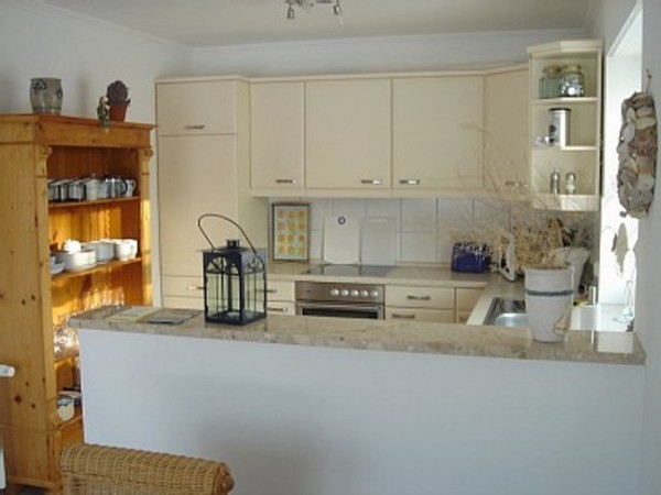 In unserer liebevoll eingerichteten Ferienhaushälfte kommen Sie über einen großen Flur in das Wohnzimmer das mit einer Sitzecke für 5 Personen sowie TV und Radio eingerichtet ist. Die offene Küche ist ausgestattet mit einem Ceranfeld mit Backofen, Geschirrspüler, Mikrowelle und Kühlschrank mit Tiefkühlfach. Übergang zum Wohnzimmer bildet der Esstisch mit 5 Stühlen. Weiterhin befindet sich im Erdgeschoss ein Gäste WC und ein Abstellraum. Im Obergeschoss ist das Badezimmer mit Dusche, ein Schlafzimmer mit einem Doppelbett sowie ein weiteres Schlafzimmer mit 2 einzelnen Betten. Am Haus können Sie auf der Terrasse mit Gartenmöbel und Elektrogrill die Sommerabende genießen. Ein Stellplatz für Ihren PKW ist vorhanden. Im Garten ist ein Gartenhaus zum Abstellen Ihrer Fahrräder und sonstigen Sachen.