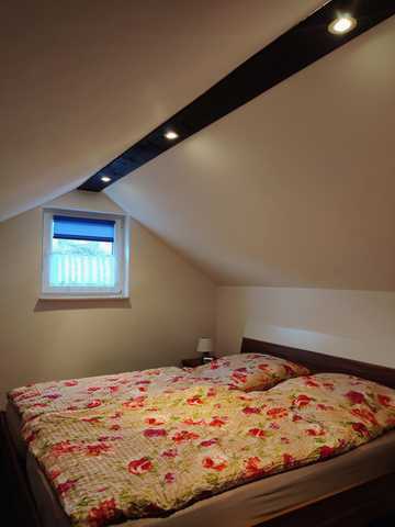 Die Ferienwohnung besteht aus einem kombinierten Wohn- und Schlafraum. Das Bett befindet auf einem Schlafboden, der über eine Treppe zu erreichen ist.