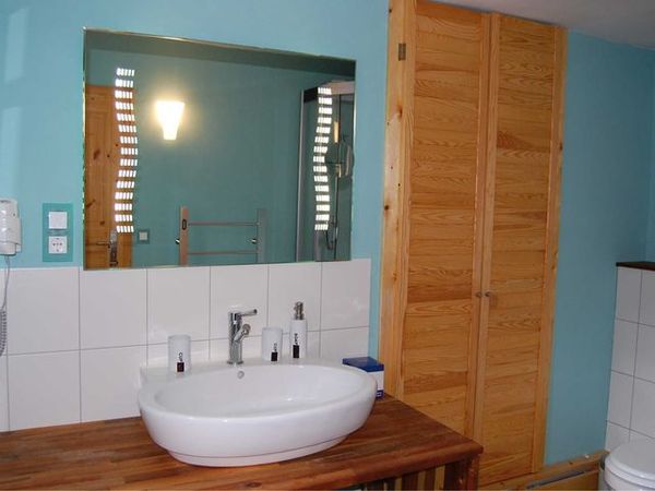 Die Ferienwohnung im Erdgeschoss ist knapp 50 m² groß und verfügt über ein Schlafzimmer, ein Esszimmer mit Küchenzeile, ein Duschbad sowie einen Wohnungsflur mit zusätzlicher Kleider- und Kofferablage. Zur geschmackvollen Ausstattung zählen eine Edelstahlküche mit Ceranfeld, Mikrowelle, Kühlschrank und Geschirrspüler, sowie allergikergeeignete Matratzen und Federbetten im Schlafraum. Das geräumige Bad ist mit Wellnessdusche, Handtuchtrockner, Hotelfön und beleuchtetem Großspiegel ausgestattet. Natürlich verfügt Ihr Appartement über Sat-LCD-TV, Stereoanlage, WLAN und Tresor. Die eigene Terrasse sowie der gemeinsame Grillplatz für lauschige Abende vervollständigen Ihren Urlaubstraum. Im Nebengelass steht Ihnen ein Hauswirtschaftsraum mit Gefrierschrank, Waschmaschine, Kondenstrockner und Bügelbrett zur Verfügung. Nach Absprache können Sie natürlich auch die vorhandenen Fahrräder für Tagestouren kostenfrei nutzen! Handtücher und Bettwäsche sind inklusive, ein "Komfort-Service, also eine Zwischenreinigung alle 3-4 Tage ist gegen Aufpreis möglich. Gegen Aufpreis können wir Ihnen auch ausgewählte Bio- bzw. Selbsterzeuger-Produkte aus der Region besorgen.