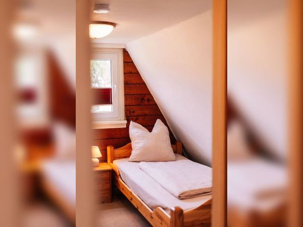 Eine steile Raumspartreppe führt zu den zwei Schlafräumen - ein Schlafzimmer mit Doppelbett, ein Schlafzimmer mit zwei Einzelbetten. Die Bettwäsche ist inklusive. Handtücher bitte mitbringen!