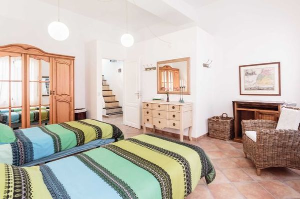 Vom Hauseingang geht es über eine schmale Steintreppe in die erste Etage, in der das geräumige Schlafzimmer liegt. Sie wählen zwischen Doppelbett oder zwei Einzelbetten - mit einem Handgriff lässt sich das Bett verwandeln. Neben dem Schlafzimmer befindet sich das Bad mit Dusche, Waschbecken, Bidet und WC. In einem weiteren Raum steht Ihnen eine Waschmaschine zur Verfügung.
