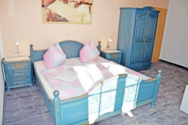Unsere modern eingerichteten Doppelzimmer (21 qm) sind mit rustikalen Bauernmöbeln komfortabel ausgestattet und in den Farben Blau oder Grün gehalten. Zur Ausstattung gehören bequeme Doppelbetten mit Nachttischen und Leselampen, Sitzmöbel mit Tisch, Kleiderschrank, Kühlschrank, Wasserkocher, Flachbild-TV und Radio.Tassen und Löffel sind ebenfalls vorhanden. Separat für alle Gäste haben wir Geschirr, wie Teller, Teetassen sowie Besteck und Geschirrhandtücher. Ab 2016 gibt es auch einen kostenlosen WLAN-Anschluss. Bei Ihrer Anreise liegen frische Handtücher bereit und die Betten sind selbstverständlich bereits mit Bettwäsche bezogen. Alle Zimmer verfügen über ein separates Bad mit Tageslicht, Dusche und WC. In unserem Frühstücksraum starten Sie den Tag mit einem ausgiebigen Frühstück vom reichhaltigem Buffet. Wir halten auch eine Auswahl an Getränken für Sie bereit.