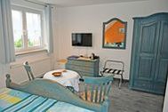 Unsere modern eingerichteten Doppelzimmer (21 qm) sind mit rustikalen Bauernmöbeln komfortabel ausgestattet und in den Farben Blau oder Grün gehalten. Zur Ausstattung gehören bequeme Doppelbetten mit Nachttischen und Leselampen, Sitzmöbel mit Tisch, Kleiderschrank, Kühlschrank, Wasserkocher, Flachbild-TV und Radio. Tassen und Löffel sind ebenfalls vorhanden. Separat für alle Gäste haben wir Geschirr, wie Teller, Teetassen sowie Besteck und Geschirrhandtücher. Ab 2016 gibt es auch einen kostenlosen WLAN-Anschluss. Bei Ihrer Anreise liegen frische Handtücher bereit und die Betten sind selbstverständlich bereits mit Bettwäsche bezogen. Alle Zimmer verfügen über ein separates Bad mit Tageslicht, Dusche und WC. In unserem Frühstücksraum starten Sie den Tag mit einem ausgiebigen Frühstück vom reichhaltigem Buffet. Wir halten auch eine Auswahl an Getränken für Sie bereit.