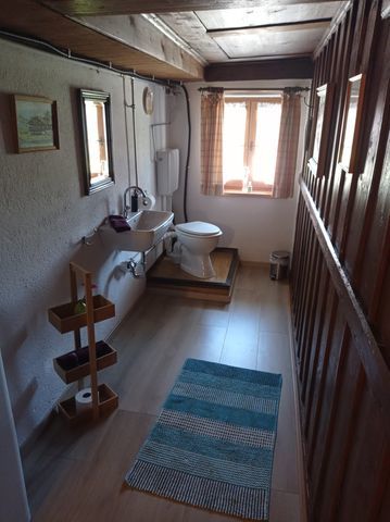 Sie verfügt über eine Wohnküche, ein Schlafzimmer und Dusche. Das WC befindet sich auch im 1. Stock, gegenüber der Ferienwohnung, wird aber ausschließlich durch die Gäste benützt.