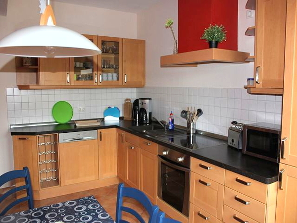 Das Bad hat eine Dusche und eine Badewanne. Die Küche ist komplett ausgestattet, verfügt über eine Einbauküche mit Cerankochfeld, Backofen, Geschirrspüler und Mikrowelle.