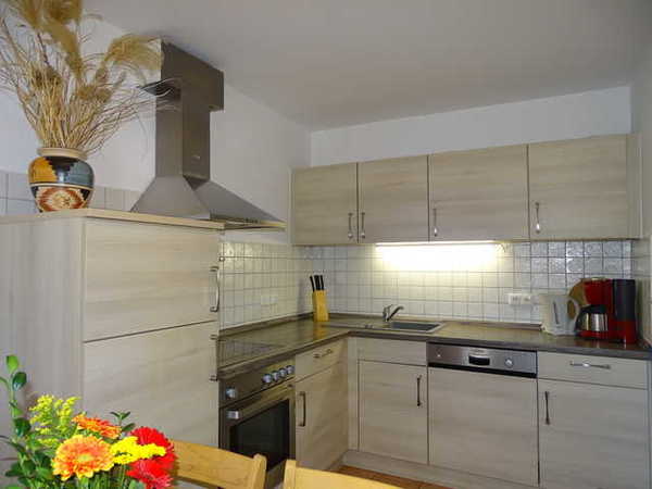 - voll ausgestattete Küche mit gemütlicher Eckbank am Esstisch