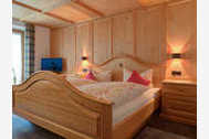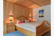 Ein gemütlich mit handgefertigten Möbeln im bayr. Stil eingerichtetes Doppelzimmer im 1. Stock mit Balkon Richtung Süden und Blick auf den Wallberg.
