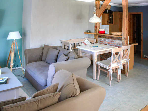 Dusche/WC, Bettwäsche, TV, Kabel/Sat, Musikanlage, Terrasse, Tiere willkommen, Nichtraucher, Spülmaschine, Kühlschrank, Kamin, Heizung, WLAN, Küche (offen), Wohn/Schlafraum komb., Strandkorb (persönlich), Etagenbett, Doppelbett