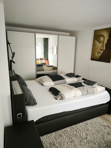 Die Wohnung bietet Platz für bis zu 5 Personen. Es stehen zwei große Schlafzimmer zu Verfügung. Eine zusätzlich vorhanden, komfortable Schlafcouch bietet eine weitere Schlafmöglichkeit. Ein Kinderbett steht ebenfalls zur Verfügung. Das Badezimmer ist mit Badewanne, Waschmaschine und Trockner ausgestattet. Ein 40 qm großes Wohnzimmer mit großem Balkon bietet gemütlichen Komfort. Der Treppenaufgang zum zweiten Schlafzimmer ist kindergerecht abgesichert.