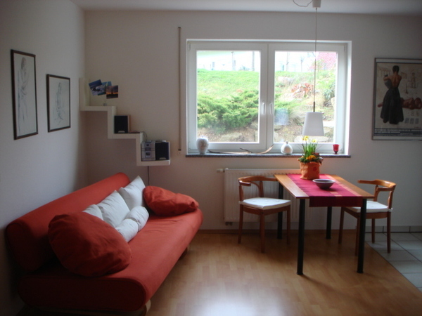 Die Nichtraucher- Ferienwohnung Feininger hat einen separaten Eingang und ist ca. 50 m² groß.Sie verfügt über ein Wohnzimmer mit gemütlicher Sitzecke (Schlafcouch), Essplatz, Laminat-Fußboden und Küchenzeile. Das separate Schlafzimmer mit Doppelbett sowie das geräumige Bad mit Fußbodenheizung, Badewanne und integrierter Dusche ergänzen die Wohlfühlatmosphäre. Im Garten steht ein Freisitz mit Liege und Gartenmöbeln bereit.