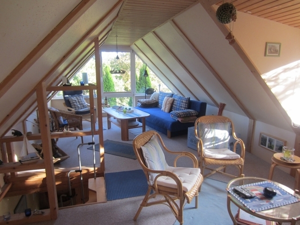 - TV, freigelegte Holzbalken und liebevolle Dekoration sorgen für Gemütlichkeit