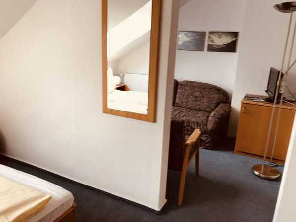Behagliches Doppelzimmer mit Couch als 3.te Schlafmöglichkeit für ein Kind. Das Zimmer ist ausgestattet mit DU/WC, Farb- TV, Radio- Wecker und Fön. Gerne stellen wir Ihnen einen kostenlosen Internetzugang zur Verfügung. Morgens genießen Sie unser reichhaltiges Frühstücksbuffet.