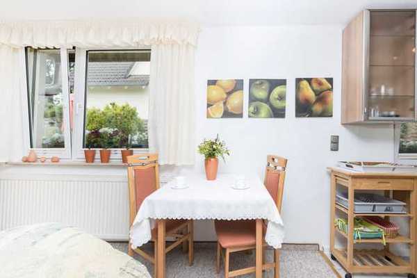 Ferienwohnung mit Atmosphäre für 2 Personen geeignet, moderne, komfortable Ausstattung im Landhausstil, Ausstattung: 1 Wohnraum (1 Aufbettung möglich),1 Schlafraum, Küche (kompl. Ausstattung), Dusche/WC, Sat-TV, Radio, Parkplatz und Sitzplatz im Freien + Grill.