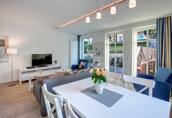 MODERN mit SÜDTERRASSE, FAHRSTUHL, nur ca. 100 m zur STRANDPROMENADE! Komfortabel eingerichtete 3 - Zimmer - Wohnung im EG mit sehr guter Ausstattung! 2 separate Schlafzimmer, 2 Bäder (1 Wannenbad und Fußbodenheizung, 1 Duschbad) , Wohnbereich mit Küchen- und Eßbereich, möblierte Terrasse mit Strandkorb (ca. 15 qm). Die Wohnung verfügt über einen Pkw-Stellplatz in der hauseigenen Tiefgarage. Fahrradabstellfläche ist vorhanden. Vom Haus aus können Sie das Ortszentrum und die bekannte Ahlbecker Seebrücke in ca. 2 Minuten zu Fuß erreichen.