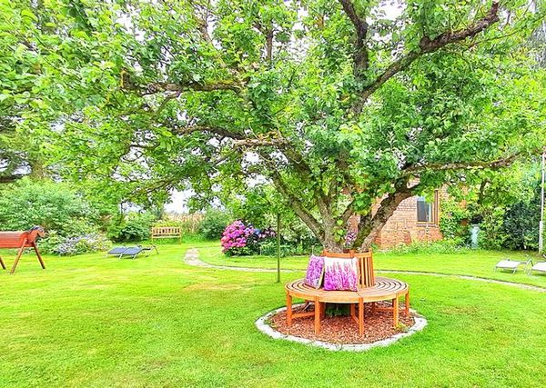 Auf dem Grundstück gibt es noch zwei Ferienbungalows - deshalb ist der weitläufige Garten nicht zur Alleinnutzung.