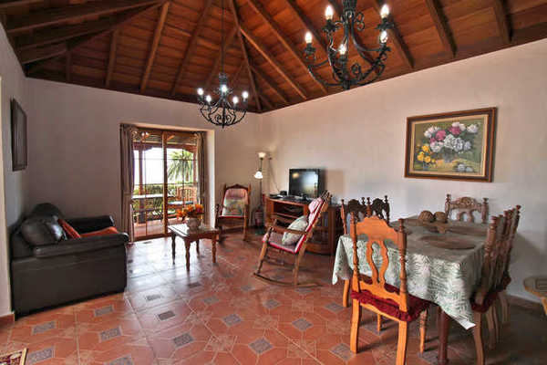 Auf einer Wohnfläche von insgesamt 112qm stehen Ihnen zwei Schlafzimmer, 2 Bäder, eine separate Küche und ein großer Wohnbereich zur Verfügung. Das Haus ist sowohl für Paare als auch für Familien gut geeignet.Der Wohnbereich wurde mit dunklen Massivholzmöbeln eingerichtet. Die beiden Schaukelstühle im Kolonialstil hat sich der Eigentümer aus Kuba kommen lassen. Am großen Esstisch finden bis zu 6 Personen Platz.