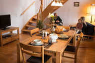 Wohn- Esszimmer, Ausziehcouch, Fernseher mit Sat TV und Free W-Lan.