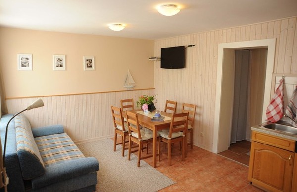 Das Ferienhaus hat eine Gesamtfläche von ca. 60 m² . Es umfasst einen Wohnraum mit kompletter Küche und zwei Schlafräumen. Ein Schlafraum ist mit einem Doppelbett ausgestattet, der zweite mit zwei Einzelbetten.Jetzt auch mit Kaminofen.