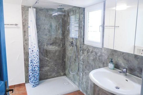 Die eigene Terrasse mit Gartenmöbeln und Sonnenschirm lädt bei schönem Wetter zum Frühstück im Freien oder einem entspannten Abend ein. Gäste können das kostenfreie WLAN nutzen und bei Bedarf lässt sich im Schlafzimmer ein mitgebrachtes Kinderreisebett aufstellen. Der Hund der Vermieter lebt auf dem Grundstück und bewegt sich frei im Garten.