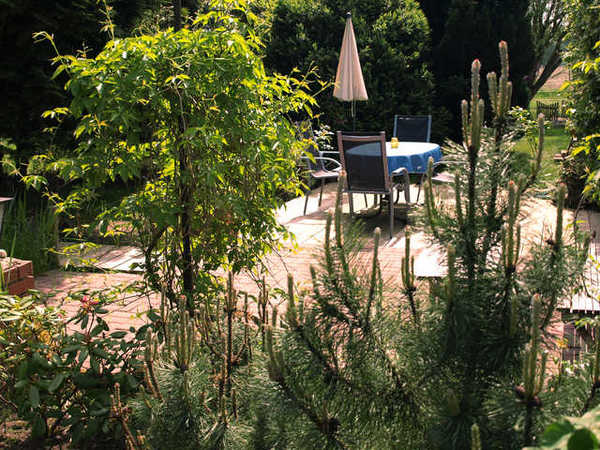 Im Aussenbereich können Sie eine Terrasse direkt am Haus sowie den gesamten Garten nutzen. Eine weitere Terrasse mit Sitzgelegenheiten und Holzkohlegrill, einem Erfrischungsbecken (90 cm tief) befinden sich auf der Wiese hinter dem Haus.