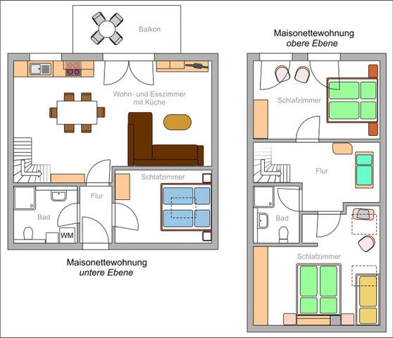 Die 4-Zimmer-Ferienwohnung hat ihren Eingang im 1. Obergeschoss und verfügt über insgesamt 2 Etagen.