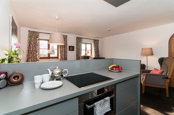 Hier die Details der Ferienwohnung Haus 8 und der Einliegerwohnung: - Wohnraum mit offener Küche