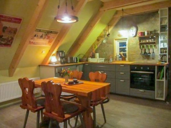 Hoch oben im Dachgeschoss unter dem charmanten Reetdach, erwartet dich Koras Dachkammer ein einzigartiges Urlaubsdomizil für zwei Personen, das mit seiner skandinavisch inspirierten, künstlerisch-verspielten Atmosphäre verzaubert. Dank eines eigenen Eingangs genießt du hier absolute Privatsphäre. Auf 63 m² verbinden sich Gemütlichkeit und stilvolle Details zu einem ganz besonderen Rückzugsort. Das Wohnzimmer lädt mit bequemen Sesseln, einem Sofa und TV zu entspannten Stunden ein, während der Essbereich mit offener Landhausküche zum gemeinsamen Kochen und Genießen bereit steht. Die voll ausgestattete Küche mit Herd, Backofen, Kühlschrank, Spüle, Kaffeemaschine, Toaster und Wasserkocher bietet alles, was du für dein Frühstück oder ein romantisches Abendessen brauchst. Das separate Schlafzimmer mit einem kuscheligen Doppelbett (150x200) und zwei Kleiderschränken sorgt für erholsame Nächte. Auch das Bad mit Dusche und WC bietet alles für einen angenehmen Aufenthalt. Draußen erwartet dich dein eigener, abgegrenzter Sitzbereich im Garten perfekt für ein Frühstück in der Morgensonne oder einen entspannten Abend mit einem guten Glas Wein. Hier kannst du die Ruhe genießen, die frische Luft atmen und einfach den Alltag hinter dir lassen.