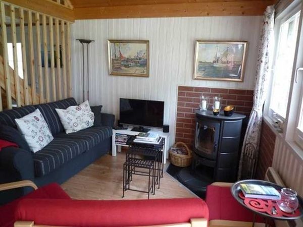 Der gemütliche Wohnraum verfügt über Couch, Tisch, Flachbildschirm, DVD-Player, Stereoanlage und einem Kamin für besinnliche Stunden. Die offene Küche zum Wohnraum ist mit einem 4-Platten-Herd, Spülmaschine, Kaffeemaschine, Wasserkocher, Toaster, Backofen und einer Sitzecke mit Esstisch für verschiedene Mahlzeiten ausgestattet. Das Schlafzimmer 1 befindet sich im EG und verfügt über ein Doppelbett, desweiteren gelangt man vom Flur aus über eine Treppe in das OG, wo ein weiteres Schlafzimmer mit Doppelbett und einer Galerie mit Leseecke und großem Fenster mit direktem Blick auf dem Krakower See gelegen ist.
