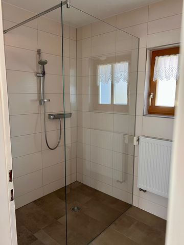 Das Esszimmer bietet Tisch und Stühle. Das Badezimmer hat Dusche,WC und Waschmaschine (über Münzautomat).
