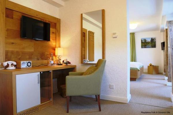Getrennter Wohn- und Schlafbereich, Doppelbett, Bad und oder Dusche/WC, Fön, Kosmetikspiegel, Bademantel, Radio, Flat-TV, Telefon, Internet-LAN, Schreibtisch, Kühlschrank, Sitzgruppe mit Schlafcouch für eine weitere Person barrierefrei, Nichtraucher