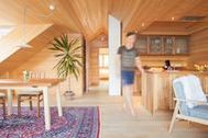 Großzügige Ferienwohnung für 2 Personen (68m²) mit Aussicht auf den See. Ein Schlafzimmer, komplett ausgestattete Wohnküche mit Zugang zum Balkon, Dusche und WC getrennt. Unbehandelter Naturholzboden, handgemachte Massivholzmöbel, Internet über WLAN-Verbindung und Kabelfernsehen. Hauseigene Fischereiprodukte.