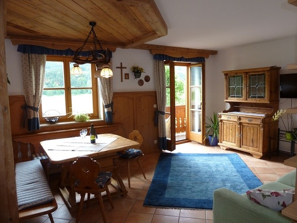 Die Blaue Wohnung ist eine sonnige, helle Wohnung (ca. 80 m²) mit 2 Schlafzimmern, Wohnküche mit Essecke, Geschirrspüler, Raumteiler, Ledersofa in der Stube, Dusche/WC, sehr großer Balkon (südseitig), SAT-TV und WLAN. Für 2 bis 5 Personen. Sehr gemütlich mit Vollholzmöbel! Ruhige Lage mit Blick über das Tal auf die Berge.