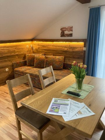 Die Wohnung (Schlafzimmer, Wohnschlafzimmer mit Essecke und Einbauküche) ist neu und überdurchschnittlich komfortabel eingerichtet mit traumhafter Lage mit Blick in die Natur.