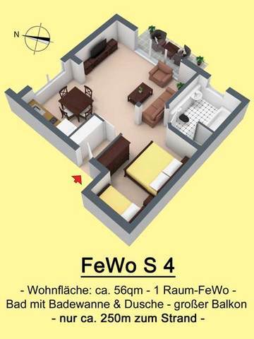 Zimmerkategorie: Ein-Raum-FeWo "Typ S4" im Seebad Karlshagen